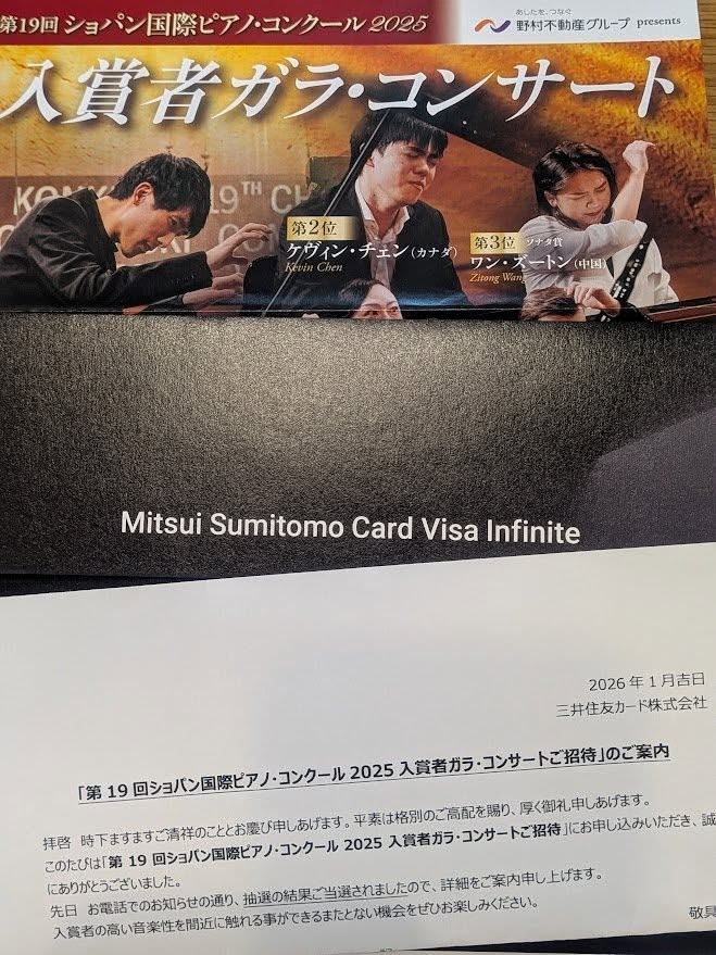 三井住友カード Visa Infiniteの特典で、「ショパン国際ピアノ・コンクール 2025 入賞者ガラ・コンサート」の招待枠に当選しました!